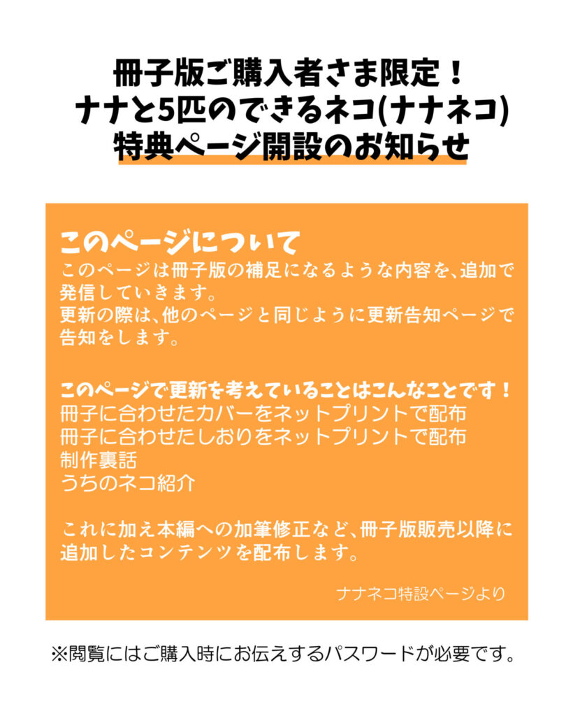 冊子版をご購入下さった方へは、特典ページを見られるパスワードをお伝えします。